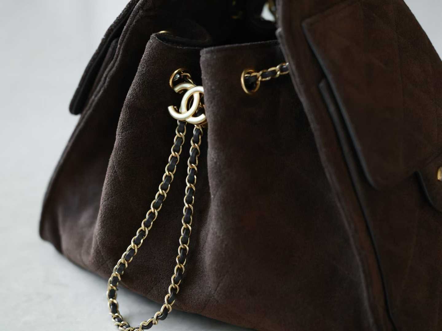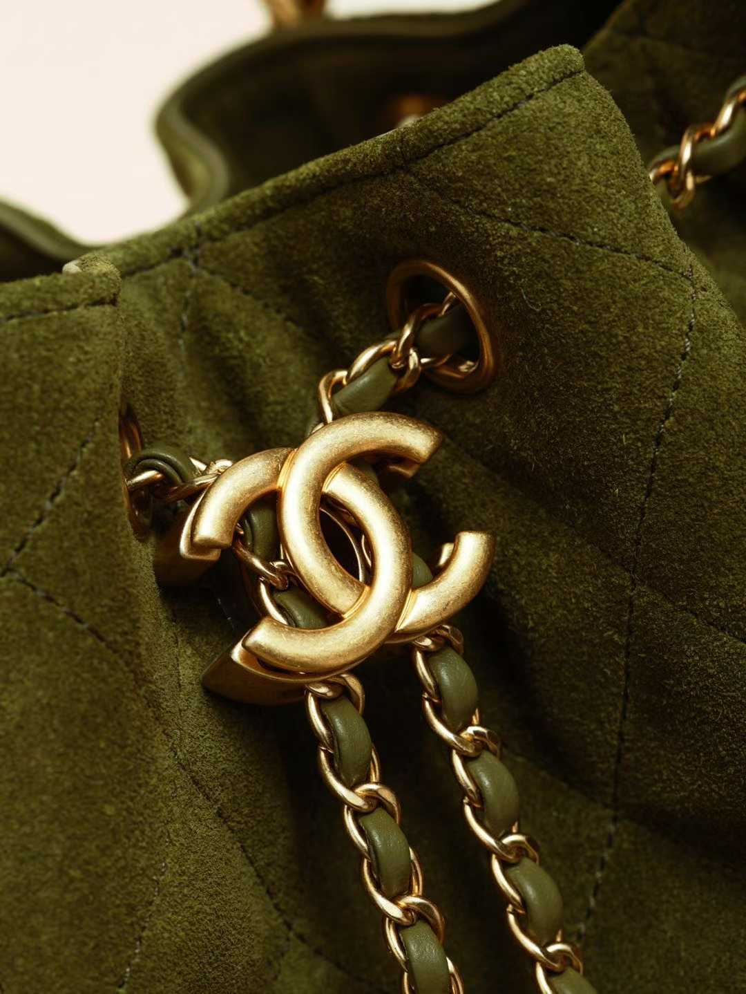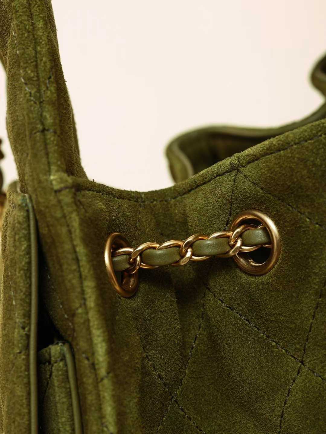 CHANEL 25k hobo 麂皮 抹茶綠 抽繩水桶包 25bag