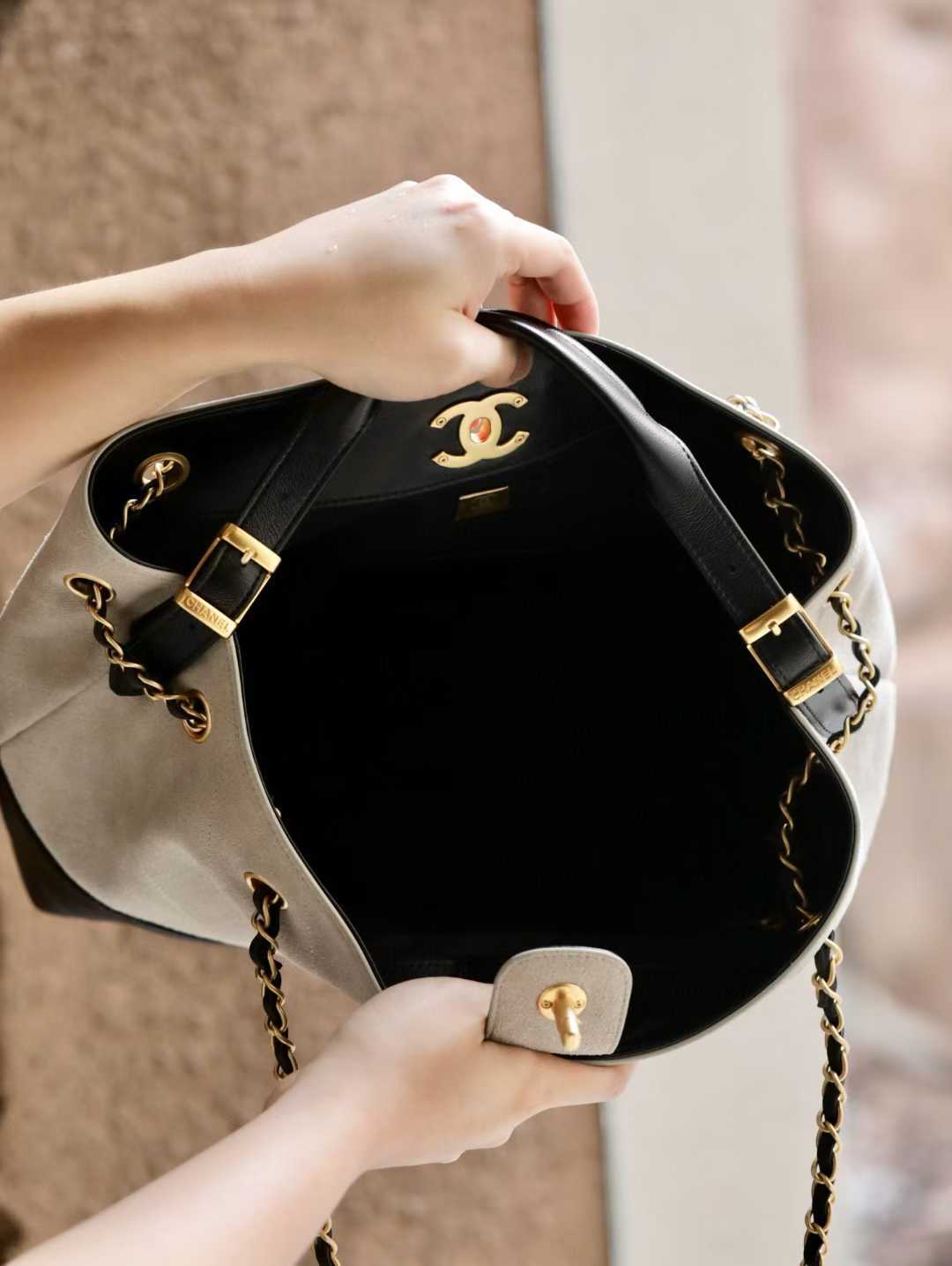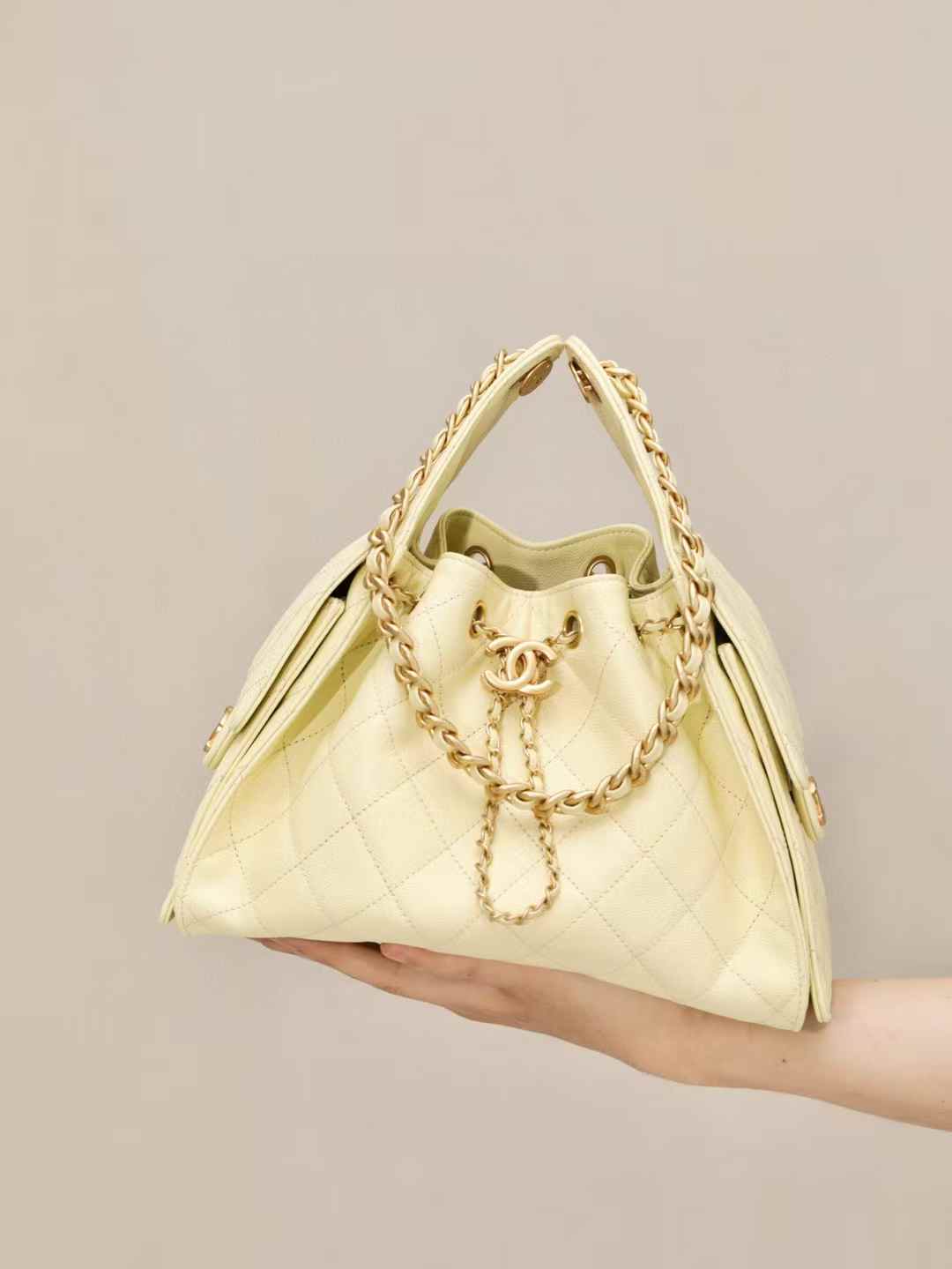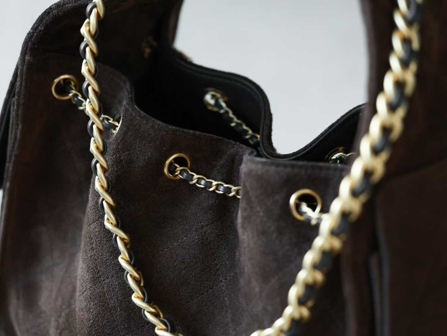 CHANEL 25k hobo 麂皮 抹茶綠 抽繩水桶包 25bag