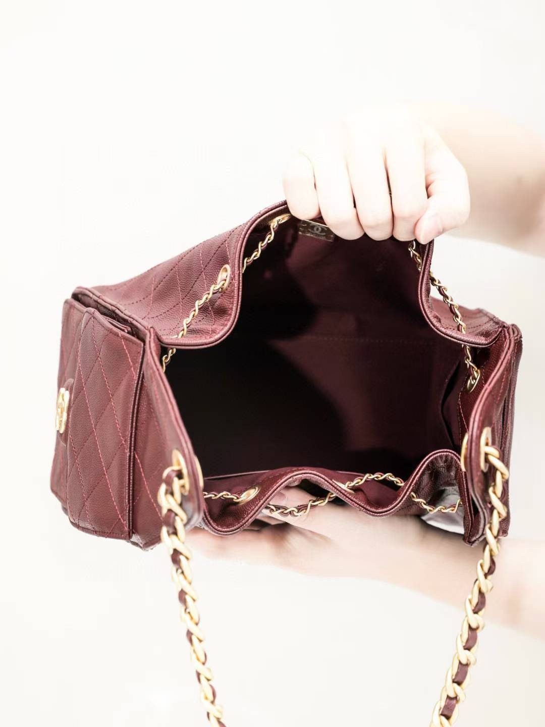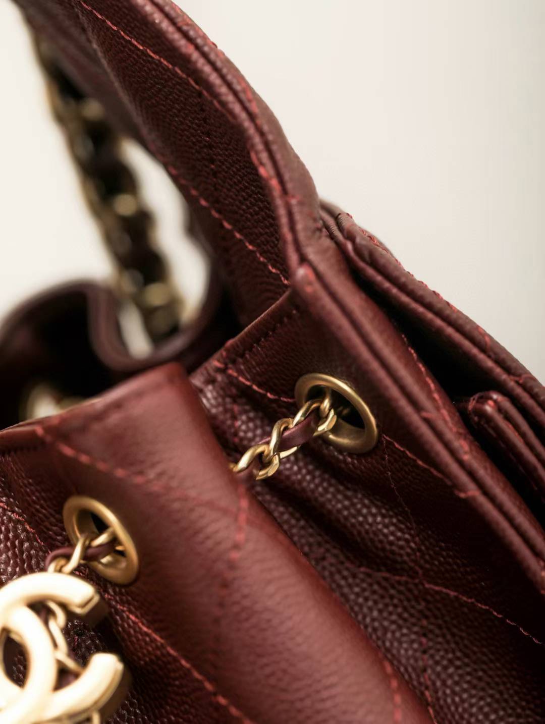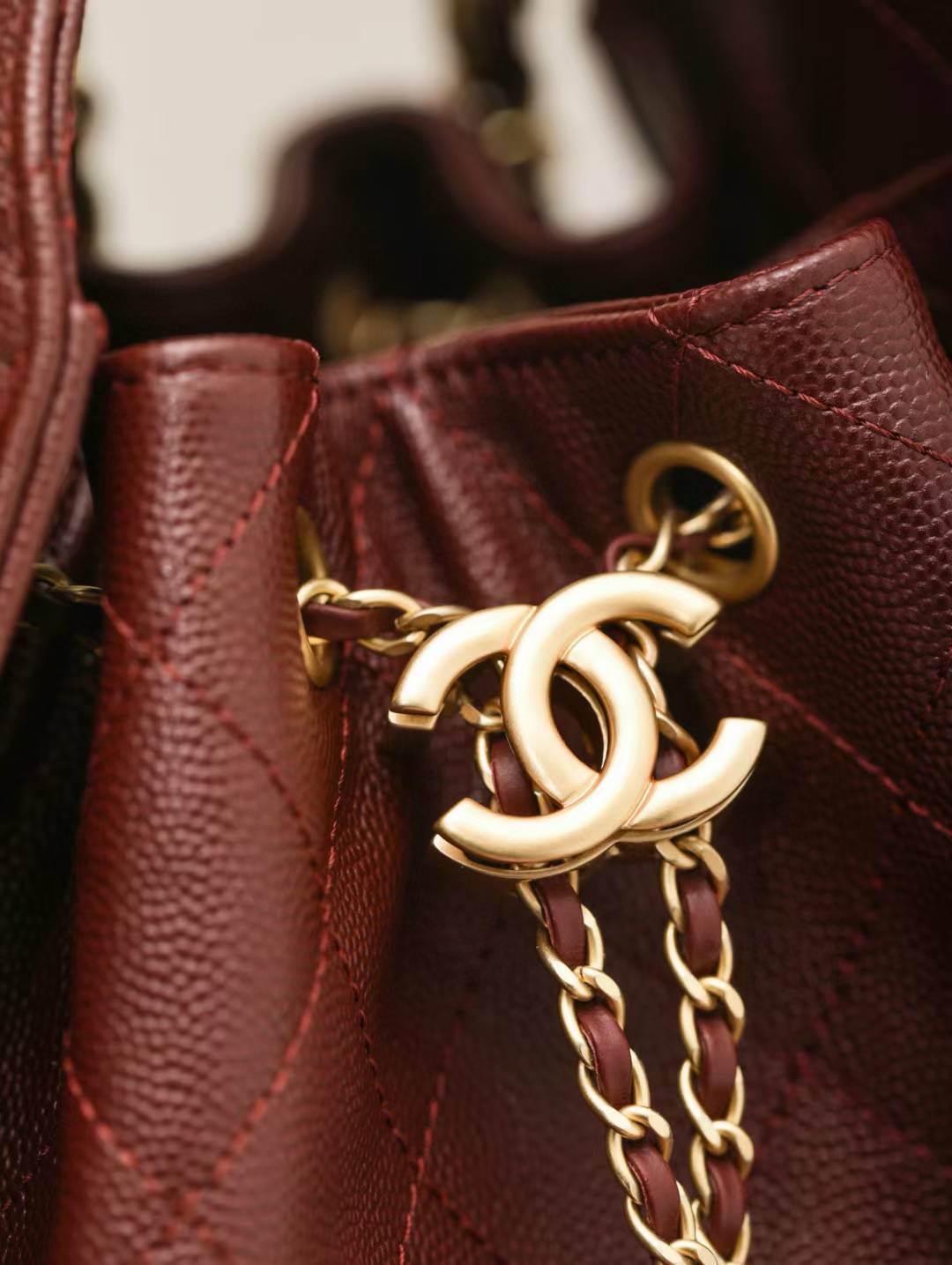 Chanel 25C hobo 抽繩水桶包 早春系列 酒紅魚子醬