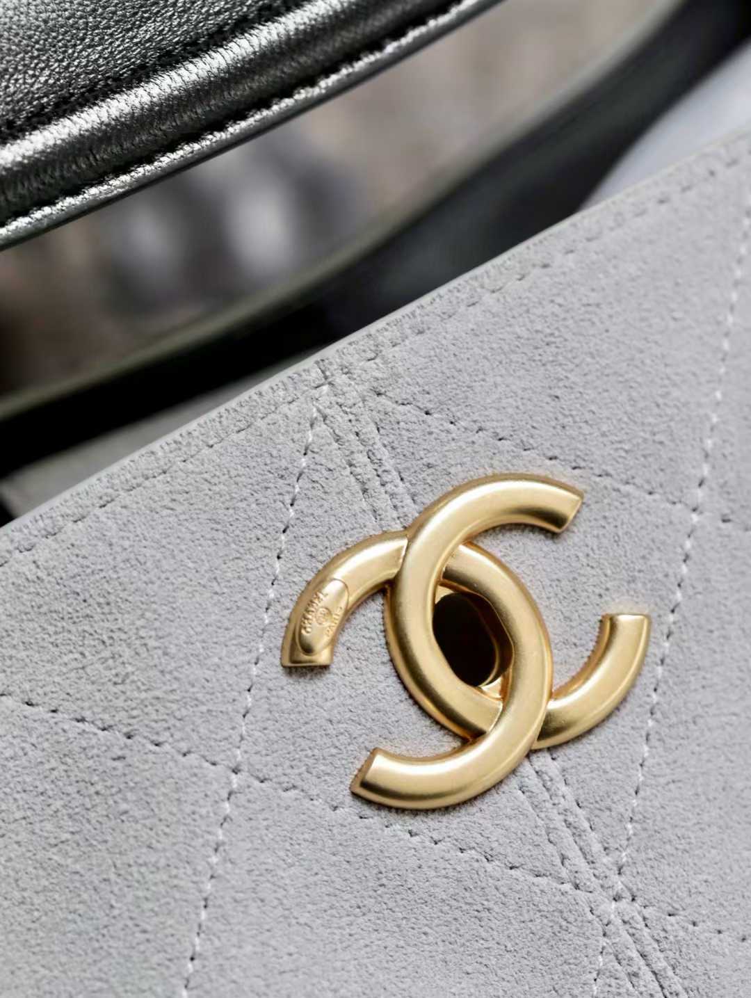 CHANEL 25A麂皮托特包 橫板 灰色